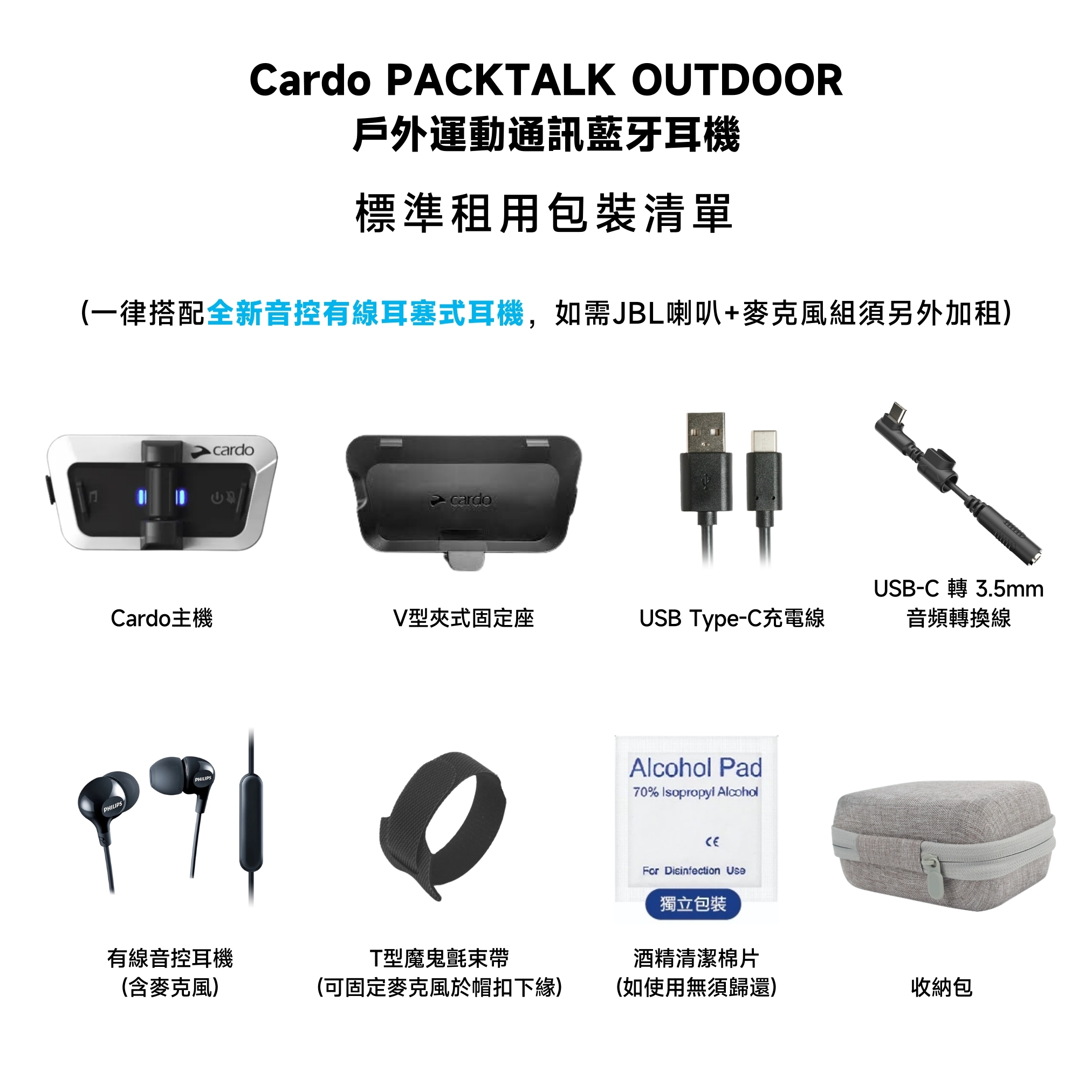 提供Cardo PACKTALK OUTDOOR 戶外運動藍牙耳機出租,支援 DMCMesh 多人通訊、藍牙 5.2、抗風耐候設計,可同時連接 2台裝置,是滑雪、健行、越野車、單車團騎、登山、溯溪、戶外活動與專業隊伍通訊最受歡迎的裝備。輕量舒適、操作簡單,非常適合短期活動或單次租借。