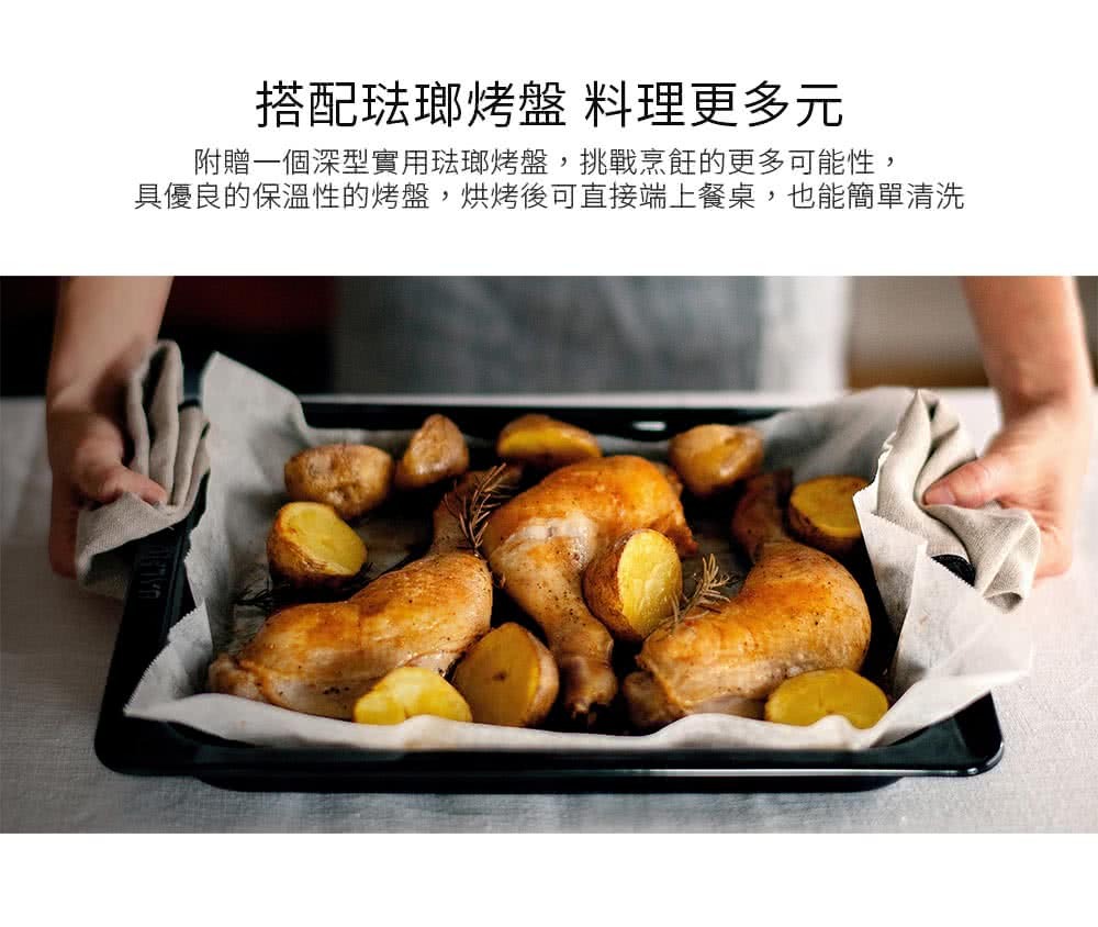 • 內附深型琺瑯烤盤,烘烤後直接上桌