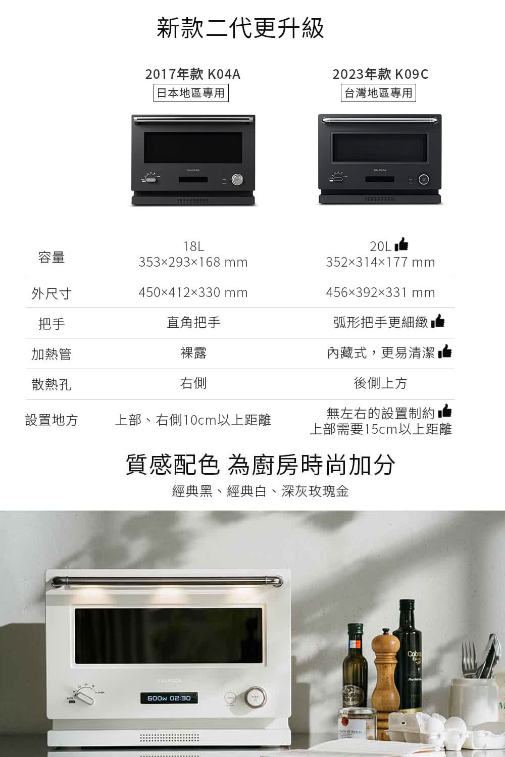 • 限定色(深灰玫瑰金)、經典黑與白,為廚房時尚加分