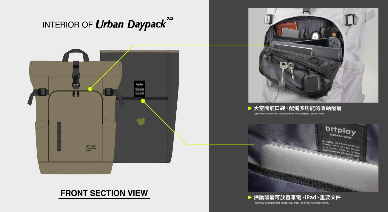 .分層收納空間,大空間前口袋,配備多功能的收納隔層,分門別類不同物品
