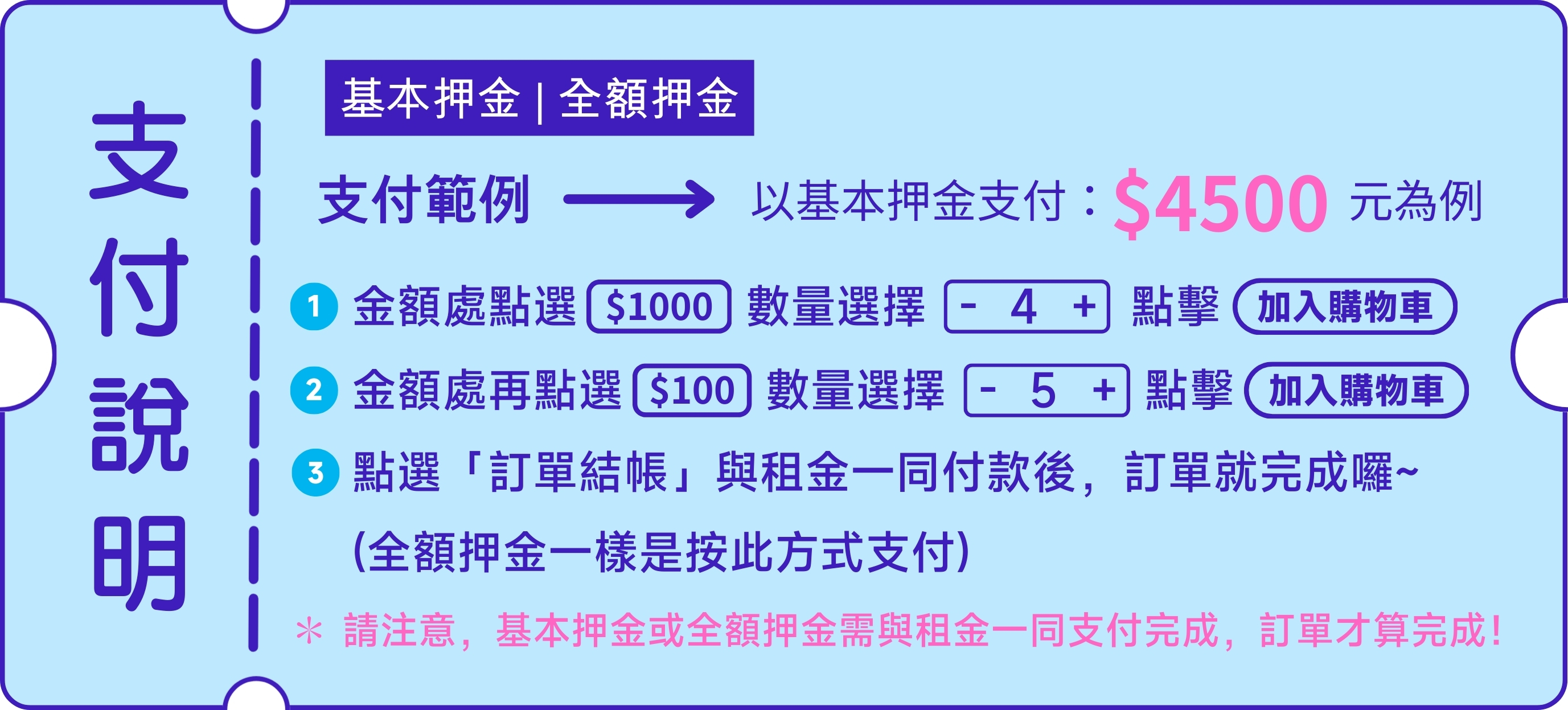 🔺 提醒您:基本押金或全額押金需與租金同時付款,訂單才會成立。