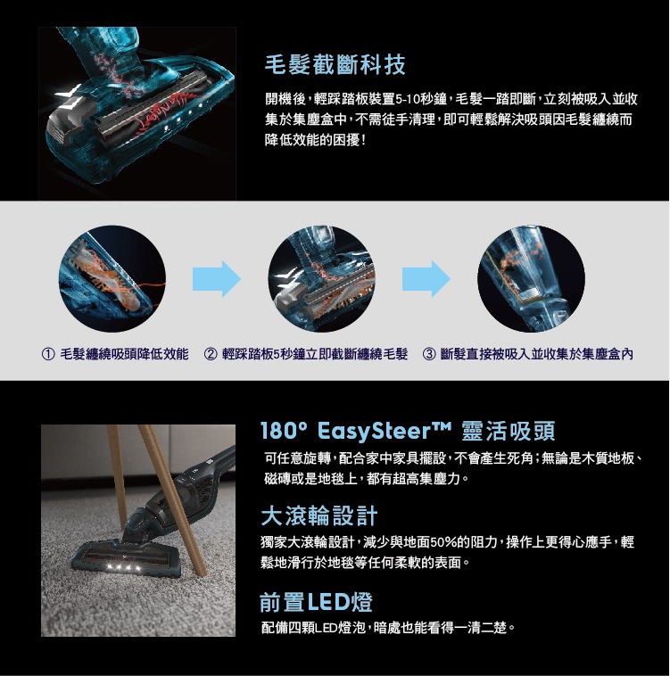 -獨家毛髮截斷科技,輕鬆清除吸頭纏繞毛髮!