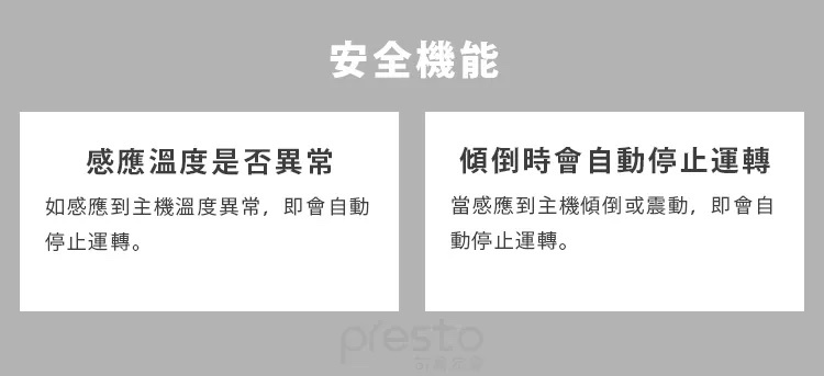 .雙重安全防護裝置,機器過熱或傾斜震動會自動停止運轉