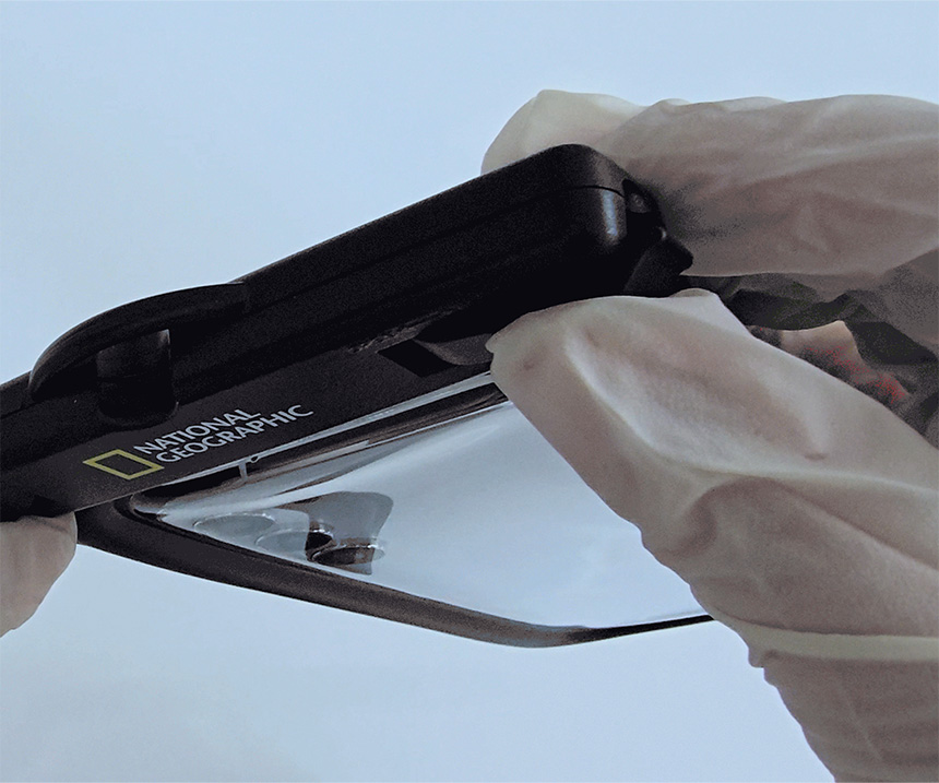 因此防水袋的透明面上會有霧霧的水痕,使用酒精擦掉即可 !
